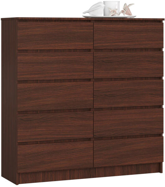 Elegáns, 10 fiókos wenge komód laminált bútorlapból, amely tökéletes tárolási megoldást kínál otthonába vagy irodájába. Modern kialakítású, kopásálló felülettel és ABS élzárással. Kifinomult tárolási megoldás időtlen wenge dizájnnalEz a modern vonalvezetésű komód egyesíti a funkcionalitást és az eleganciát. A 16 mm vastag, kopásálló laminált bútorlapból