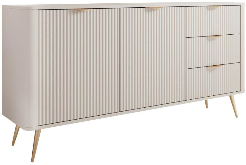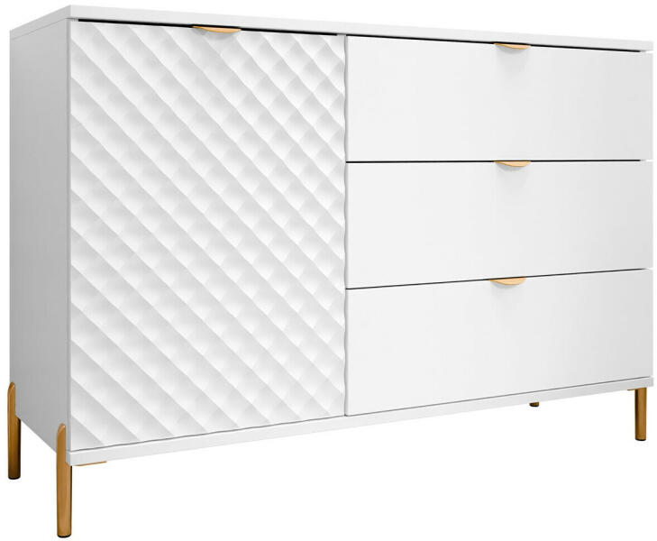 A stílusos SENSO B153 komód a szélességének köszönhetően számos tároló hellyel rendelkezik a kétajtós szekrénynek és a három fióknak köszönhetően. A fiókok lágy 3D-s martott mintával díszítettek, amely igazán modern hatást kelt. A fogantyú nélküli rendszernek köszönhetően nem rendelkezik fogantyúkkal, így egy igazi letisztult stílusú bútordarabot kap. A kétaj