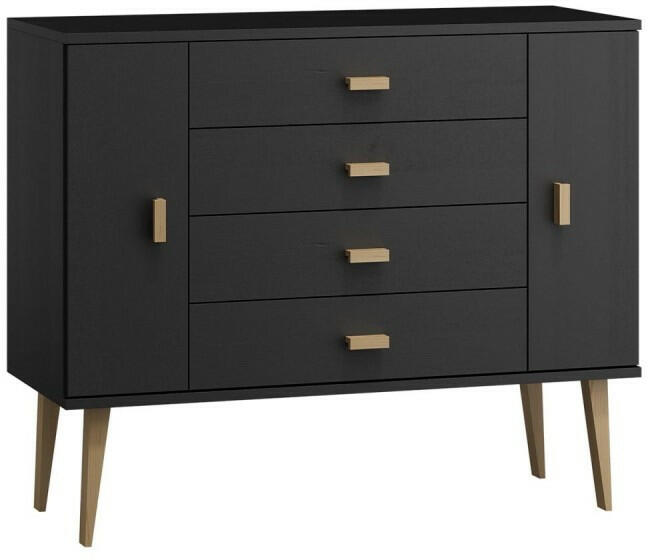 A komód teljes egészében tömör fenyőfából készült. A komód fekete környezetbarát lakkal és színtelen lakkal van lakkozva. Lapraszerelve érkezik! Ez a 2 ajtós, 4 fiókos komód teljes egészében tömör fenyőfából készült, és rendkívül gondos, precíz kidolgozással rendelkezik. Fekete ökológiai lakkal és átlátszó lakkal van bevonva, ami 100%-os végső hatást bizto