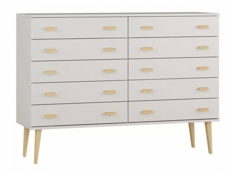 A komód teljes egészében tömör fenyőfából készült. A komód fehér környezetbarát lakkal és színtelen lakkal van lakkozva. Lapraszerelve érkezik! Ez az 5-5 fiókos komód teljes egészében tömör fenyőfából készült, amit rendkívül gondos és pontos kidolgozás jellemez. A komód fehér ökológiai lakkal és átlátszó lakkal van lakkozva, ami 100%-os végső hatást bizto