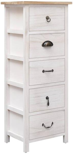 Kisszekrényünk praktikus és egyben mutatós kiegészítője lesz otthonának. Telefonállványként, hálószobai szekrényként stb. is használható. A császárfából készült fiókos szekrény rendkívül tartós és erős. A kisasztal 5 fiókkal bőséges tárolóhelyet biztosít. Emellett a tartós asztallap ideális dísztárgyak, képkeretek vagy cserepes növények elhelyezésére. N