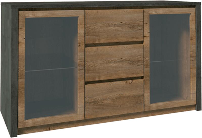 Komód, tölgy lefkas sötét/smooth szürke, MONTANA K2D Nappali bútor > Komódok Komód K2D, MONTANA Anyag: laminált DTD/ABS élek Színváltozat: tölgy lefkas sötét/smooth szürke Méretek (SzéxMéxMa): 140x43x80 cm. Szállítás szétszerelve.