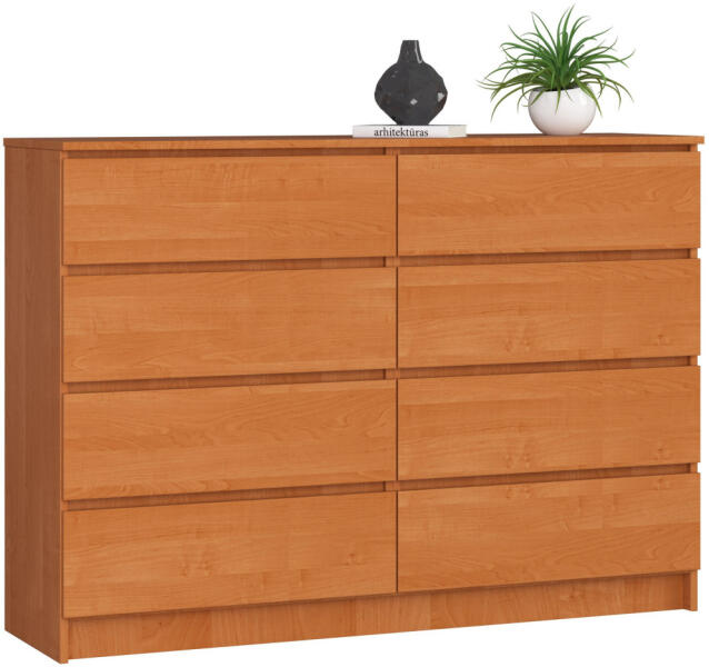 Modern, nyolcfiókos égerfa komód, amely tökéletes tárolási megoldást kínál. Kopásálló laminált lapból készült, ABS élzárással a tartósság érdekében. Elegáns tárolási megoldás az Ön otthonábaAz AKORD CLP K140 égerfa komód egy sokoldalú bútordarab, amely egyesíti a funkcionalitást és az időtlen dizájnt. A 138 cm széles komód nyolc tágas fiókjával bőséges