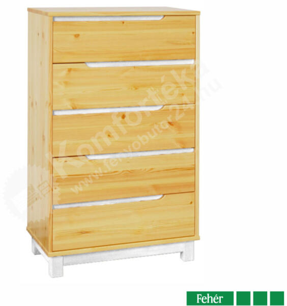 Foganttyú nélküli, modern, letisztult, elegáns, tömör fenyő komód Minden fiók görgős kivitellel készül. Részben pácolt, válásztható színnel: Szürke-Fehér-Dió-Wenge Kérhető csak lakkozattan is!