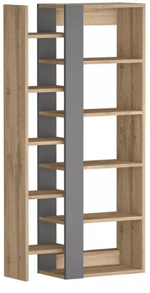 Modern, többfunkciós könyvespolc Wotan tölgy és antracit színkombinációban. Egyedi kialakítású polcrendszerével tökéletes tárolási megoldást kínál az előszobába vagy nappaliba. Stílusos tárolási megoldás modern otthonokbaA Combo könyvespolc egy innovatív és modern tárolóbútor, amely tökéletesen ötvözi a funkcionalitást és az esztétikát. A 165 cm magas, 80 cm