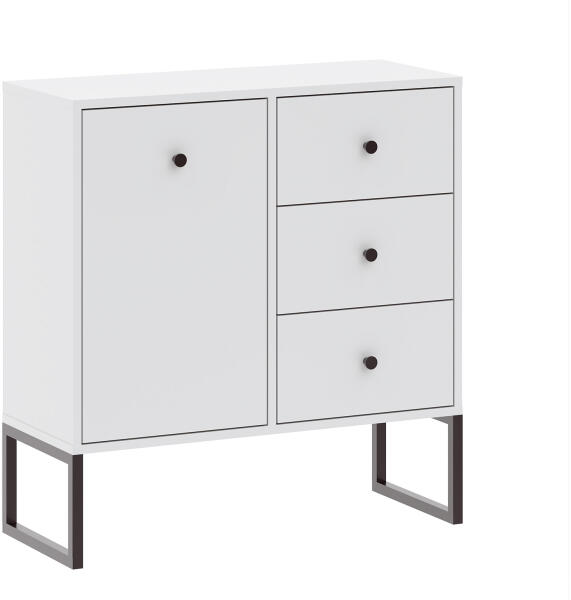 Gyönyör fehér színű keskeny LINEA 1D3S egyajtós komód három fiókkal, amely egy igazán mutatós és minőségi bútordarab. Elegáns designja és modern kialakítása mindenkit levesz a lábáról. A komód ajtaja mögött egy polcok található. A LINEA nappali bútor garnitúra számos bútor elemet tartalmaz. Ezekkel a bútorelemekkel berendezheti a hálószobát, a nappalit, a gyereks
