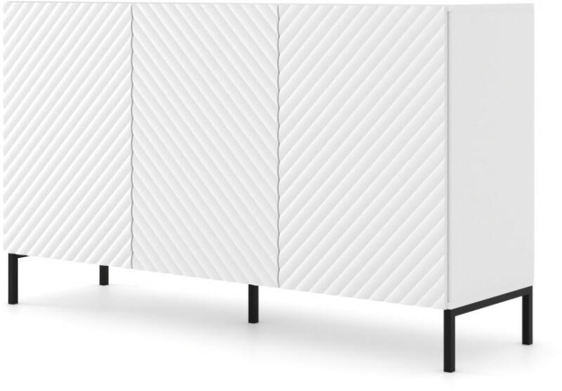Ismerd meg a Mobiliamo Surf nevű, 150 cm hosszú, matt fehér színű komódját fekete lábakkal, mely tökéletes kiegészítője lehet otthonod nappalijának vagy hálószobájának! Ez a stílusos és praktikus komód ideális helyet biztosít a különféle tárgyak és kiegészítők tárolásához. A matt fehér színű komód tisztaságot és modern megjelenést kölcsönöz a térnek, k