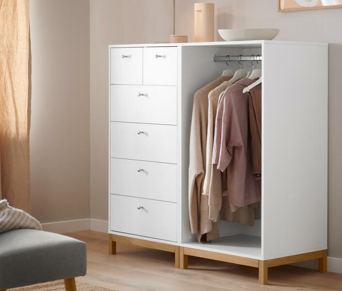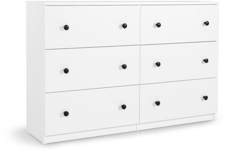 Szerezzen még több tároló helyet otthonába és vásárolja meg a minőségi fehér LEO 120 széles komódunkat, amely matt fekete fogantyúkkal rendelkezik. Ez a komód letisztult, modern designnal rendelkezik, így mindenki számára ajánljuk, aki praktikus és stílusos tároló helyet keres. A komód hat tágas fiókkal rendelkezik, amelybe elférnek a ruhák, fehérneműk, zoknik, esetle