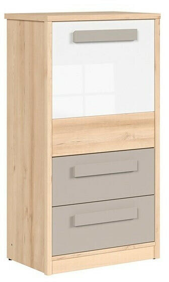 Komód, fehér extra magas fényű HG/trufla sonoma tölgy, LYNATET 35 Konyhabútorok és étkezők > Tálalószekrények és komódok > Komódok 2 ajtós komód fiókkal LYNATET 35 Változat: fehér extra magas fényű HG/ sonoma tölgy sötét trufla Anyag: váz laminált DTD fehér színű/ ajtók - laminált MDF Az Az ajtók modern lekerekített élekkel vannak ellátva Méretek (SzéxM