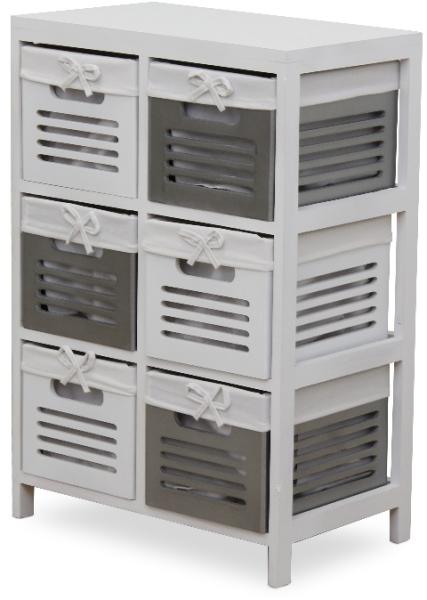 6 fiókos fehér komód szilárd kerettel BIBI 6 Anyag: fa Színe: fehér/szürke Méretek (SzéxMéxMa): 48x29x70 cm Szállítás szétszerelve.