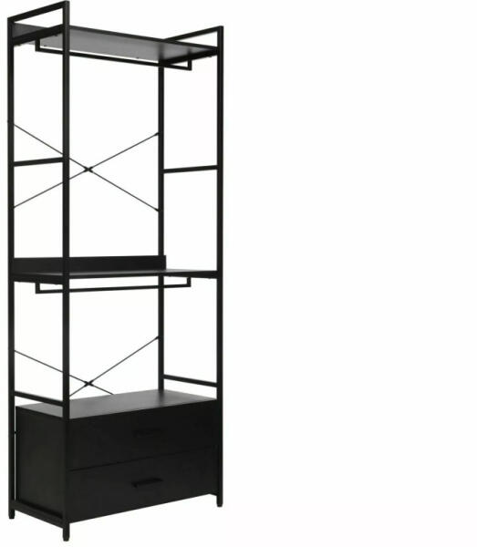 Modern, ipari stílusú polcos szekrény fekete matt fém vázzal és laminált polcokkal. Zárt tárolórésszel és praktikus polcrendszerrel ideális megoldás otthoni vagy irodai használatra. Modern tárolási megoldás maximális funkcionalitássalA Rin C polcos szekrény egy elegáns és praktikus bútordarab, amely tökéletesen ötvözi a modern dizájnt a funkcionalitással. A 200 cm mag