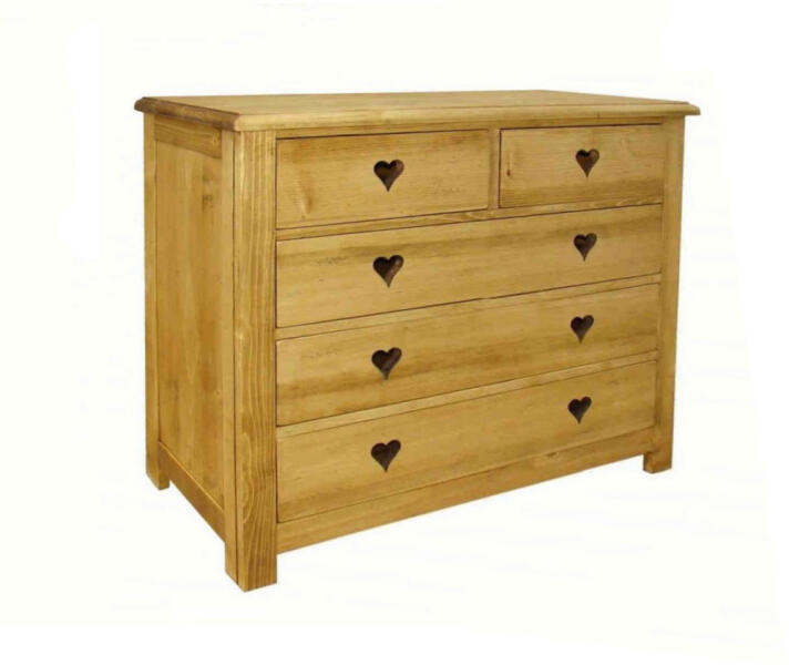 5 fiókos komód Masszív fenyőfából készült Viasz méz színű befejezés Méret: Hosszúság: 100 cm Mélysége: 42 cm Magassága: 89 cm A tömör fából készült bútoraink minőségi és időtálló választást kínálnak otthonokba, irodákba és üzletekbe egyaránt. Fő alapanyagaink a gondosan kiválasztott lucfenyő és jegenyefenyő, melyek kiváló minőségű és tartós fábó