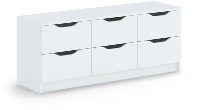 Ez az alacsony és széles fehér KELLY 4S komód összesen hat fiókkal rendelkezik és jó választást jelent mindazok számára, akik egy minimalista bútordarabot keresnek. Az 51 cm magasságának és a 122 cm szélességének köszönhetően számos tároló hellyel rendelkezik. Tökéletes irodai komód lehet, de tévés szekrényként is megállja a helyét. A széles komód minőségi 16
