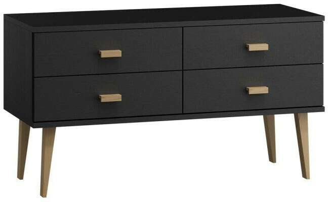 A komód teljes egészében tömör fenyőfából készült. A komód fekete környezetbarát lakkal és színtelen lakkal van lakkozva. Lapraszerelve érkezik! Ez a 4 fiókos komód teljes egészében tömör fenyőfából készült, gondos és precíz kidolgozással. Fekete ökológiai és átlátszó lakkal van bevonva, mely a legjobb végeredményt nyújtja. A fiókok görgős vezetőkön mozo