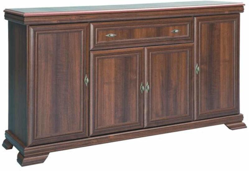 Komód, négyajtós, fiókkal, KORA KK4 Anyag: laminált DTD/MDF lécek/fém fogantyúk Szín: samoa king Méretek (SzéxMéxMa): 168x46x97 cm Váz vastagsága: 15 mm Felsőlap vastagsága: 22 mm Alsólap vastagsága: 22 mm Az alsó tér magassága a padlótól: 10,5 cm Szállítás: lapraszerelten