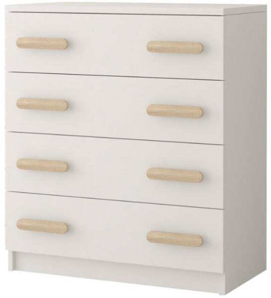 A modern fehér Svend komód gyerek- és tanulószobába megfelelő. A komód 16 mm vastag minőségi laminált deszkából (DTD) készül, ellenálló a kaparással, nedvességgel és magas hőmérséklettel szemben. A komód szélei ABS élekkel biztosítottak. A termékhez lehetőség van a SVEND kollekcióból más bútordarab megvásárlására is, így szép gyerekszoba alakítható ki. A b