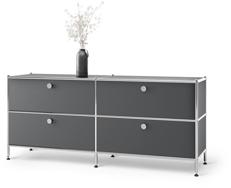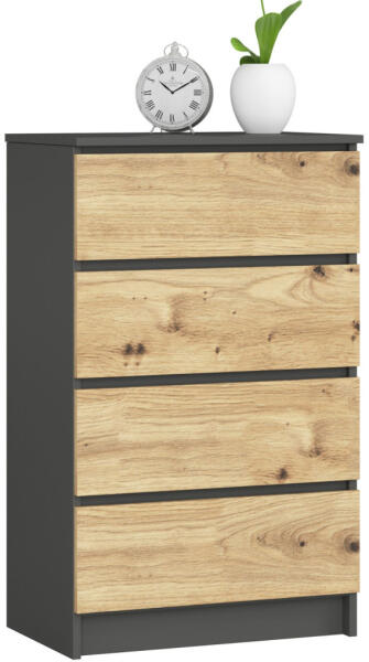 Modern, kompakt komód 4 tágas fiókkal, amely grafitszürke korpusszal és artisan tölgy frontokkal rendelkezik. Ideális tárolási megoldás a nappali vagy hálószoba számára, kiváló minőségű laminált lapból készült. Stílusos tárolás modern kivitelbenEz a modern vonalvezetésű komód tökéletes egyensúlyt teremt a funkcionalitás és az esztétika között. A grafitszürke k