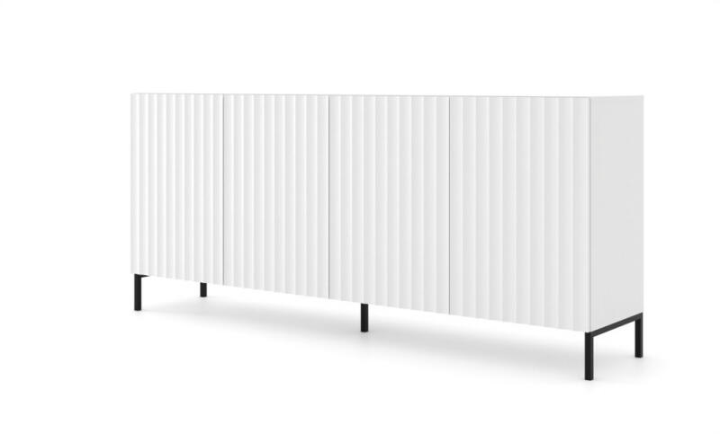 Ismerd meg a Mobiliamo Wave komódját, mely 200 cm hosszú, matt fehér színű, fekete lábakkal rendelkezik. Ez a komód nemcsak praktikus tárolóhelyet kínál a számodra, de stílusos kiegészítője is lehet otthonodnak. A matt fehér színű felület modern és letisztult megjelenést kölcsönöz a komódnak, míg a fekete lábak elegáns kontrasztot teremtenek. Ez az egyedülálló komb