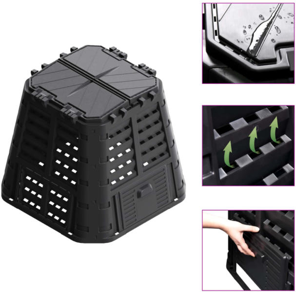 Nature 6071480 fekete komposztáló láda 400 L Ez a Nature komposztálóláda tökéletes, ha gyors és könnyű komposztálást szeretne elérni. Ez a termo-komposztáló láda fekete színű, szigetelő polipropilénből készült. Az összeszerelése könnyű és gyors a reteszelő pántrendszernek köszönhetően. Ez a láda 400 l kapacitással rendelkezik, teljesen összehajtható és így h