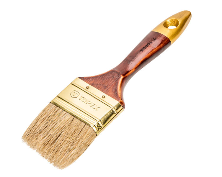 TOPEX festőecset olajfestékhez. A természetes sörte epoxi ragasztóba ágyazott, ami jobb minőséget biztosít az ecsetnek, és megakadályozza a sörte kihullását. A kézreálló, lakkozással védett fa markolat jól fekszik a tenyérben, növelve a munkavégzés kényelmét. A TOPEX márka ezermestereknek készül.