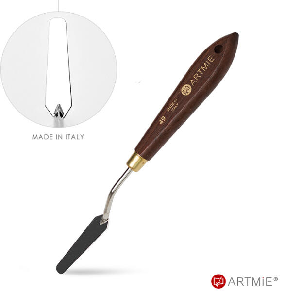 Spakli ARTMIE Pastrello 49 Olaszországban gyártot ARTMIE festőspaklik egy új kiváló minőségű festőkések különféle típusban. Az új formák széles választéka különféle felhasználásokat tesz lehetővé, a vékony rugalmas pengéktől a kicsi, jól meghatározott részletekig egészen a szélestől a lekerekített élekig és speciális lapát formájú, amely segítségével a