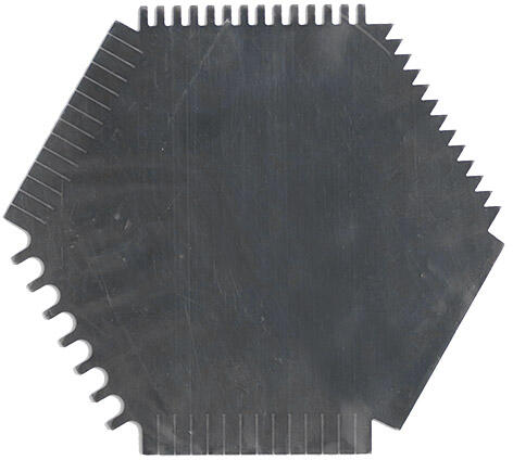 Fogazott acél spatulya 06 B Művészi fogazott acél spatulya kiváló segítő eszköz festők és szobrászok számára. A rugalmas spatulyával különböző effekteket készíthetünk akrilfestémyenken, olajfestményeken vagy szobrokon. A spatulya uyanúgy agyag és modellező masszák formázására alkalmas. A spatulya hatoldalú, mindegyik oldalán más fogazás található, ennek köszö