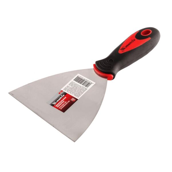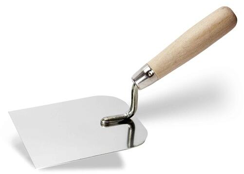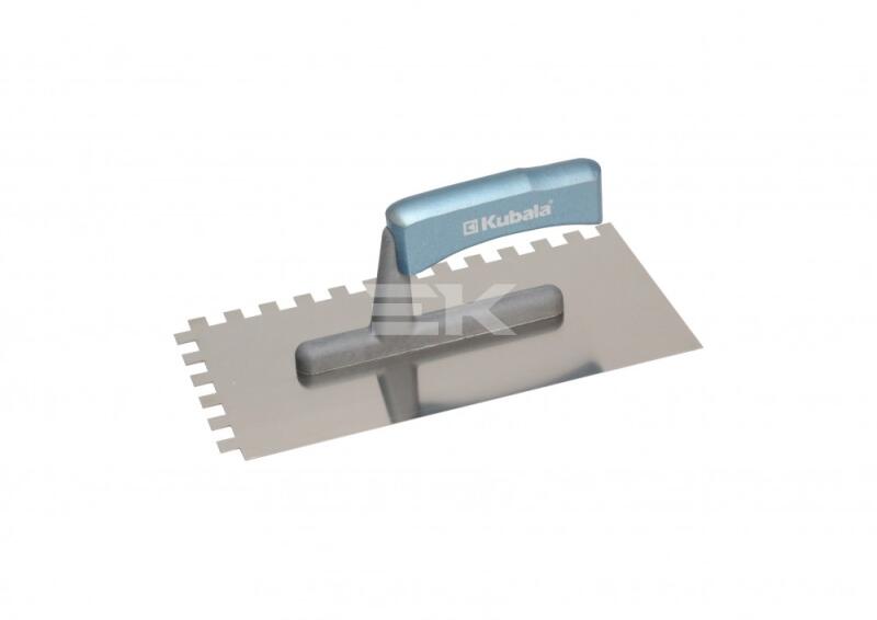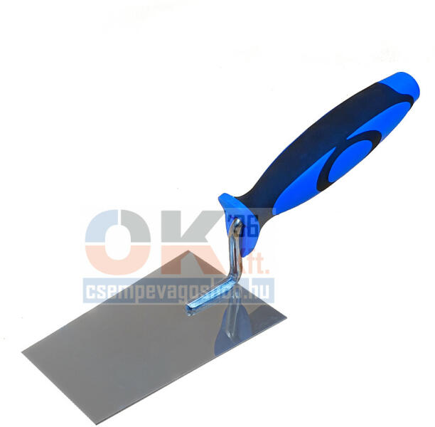 Rozsdamentes saválló acél munkafelület, vastagsága 0,7mm - ergonomikus fogantyú, profilozott, lakkozott bükkfából, lába poliamidból, üvegszál hozzáadásával - tökéletesen kiegyensúlyozott - ragasztók felhordásához