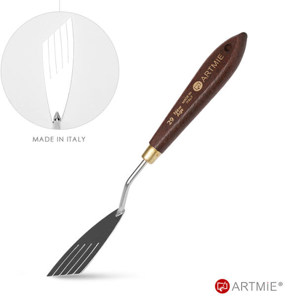 Spakli ARTMIE New Age 29 Olaszországban gyártot ARTMIE festőspaklik egy új kiváló minőségű festőkések különféle típusban. Az új formák széles választéka különféle felhasználásokat tesz lehetővé, a vékony rugalmas pengéktől a kicsi, jól meghatározott részletekig egészen a szélestől a lekerekített élekig és speciális lapát formájú, amely segítségével a f