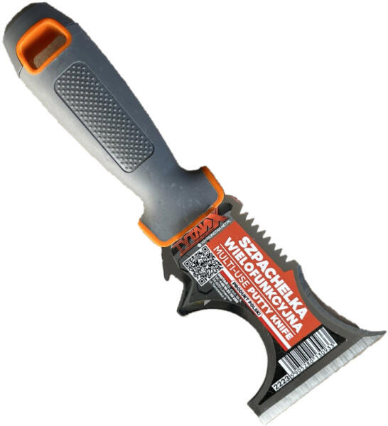 ALKALMAZÁS: éles elülső éle lehetővé teszi a kaparást az éles oldalél lehetővé teszi a szabálytalan felületek kaparását a lekerekített rész festékhengerek vagy csövek tisztítására szolgál a spakliban lévő lyuk lehetővé teszi a szögek eltávolítását a spatula lehetővé teszi a kupakkal ellátott dobozok és palackok kinyitását a kihegyezett sarok lehetővé teszi