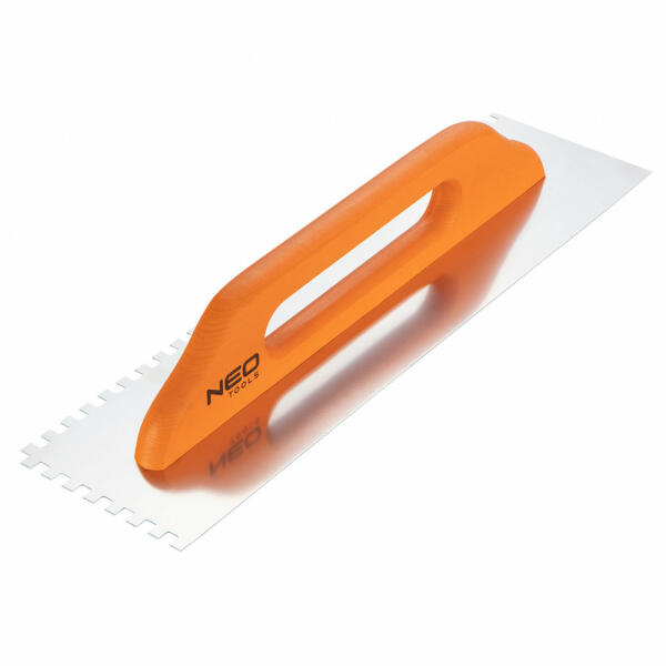 A NEO kőműveskanál kisebb mennyiségű gipsz simítóvakolat, ragasztóhabarcs vagy falazóhabarcs felvitelére szolgál nehezen hozzáférhető helyekre. Kétanyagú markolat rozsdamentes acélból készül. A kétkomponensű markolat jól fekszik a tenyérben, növelve a munkavégzés kényelmét. A NEO márka a professzionális igényeket is kielégíti.