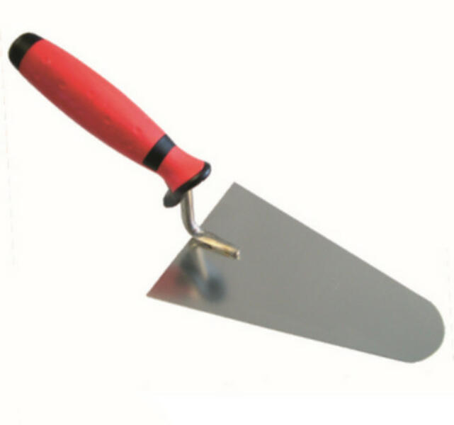 Rozsdamentes kőműveskanál, tartós és kényelmes gumimarkolattal, íves kialakítással. Méret: 160 mm