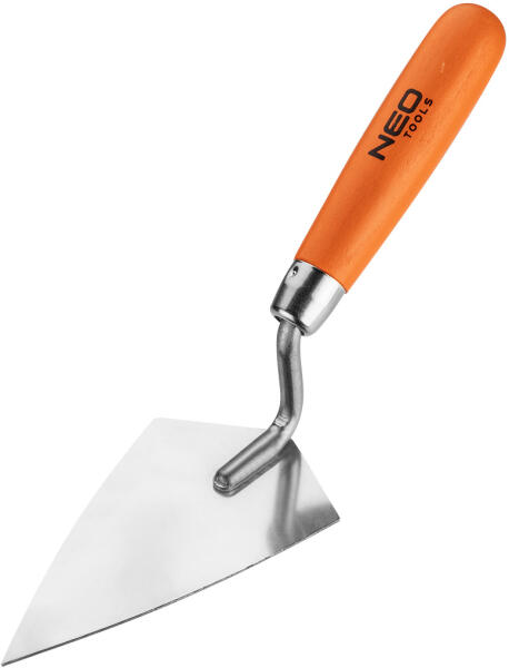 A NEO Kőműves kanál kisebb mennyiségű gipsz simítóvakolat, ragasztóhabarcs vagy falazóhabarcs felvitelére szolgál nehezen hozzáférhető helyekre. Kiváló minőségű rozsdamentes acélból készül. A fa markolat jól fekszik a tenyérben, növelve a munkavégzés kény