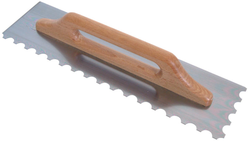Kiváló minőségű, Raimondi fogazott glettvas, íves kialakítással, folyékonyágyas ragasztók felhordásához, rozsdamentes bevonattal, lakkozott famarkolattal, melynek köszönhetően kevésbé csúszik ki a kézből, munkavégzés alatt. Terméktulajdonságok: Méretek: 48x12 cm Fogak mérete: 9 mm, íves kialakítás Súly: 600 gramm
