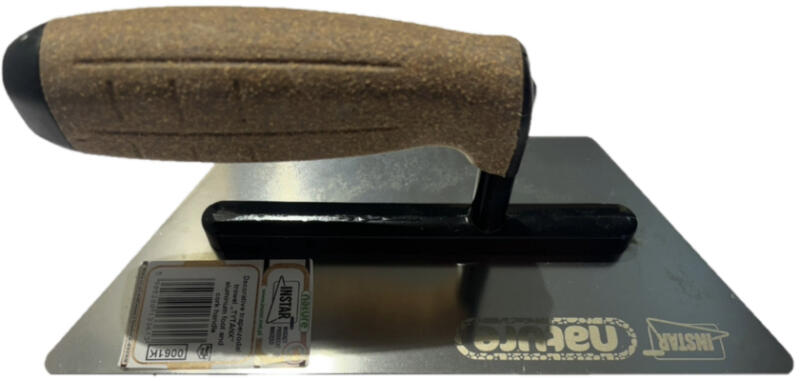 0,7mm vastag penge parafa fogantyú alumínium talp kiváló minőségű rozsdamentes acél lekerekített sarkok alumínium talp, acélpenge és parafa fogantyú dekorfalhoz anyagfelhordásra, tömörítésre és polírozásra