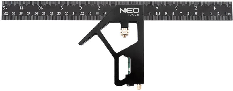 NEO multifunkciós derékszög, 1mozgó fejjel. Számos funkciót képes ellátni: ferde, vonalzó, mérő, mélységmérő, vízmérték. Ez teszi nagyon hasznos eszközzé, és számos munkakörben hasznos. Centiméter és coll skálával is rendelkezik. A mozgószárban van egy vízmérték libella is. A NEO márka a professzionális igényeket is kielégíti.