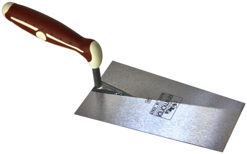 Professzionális Raimondi kőműves kanál, szögletes kialakítással, rozsdamentes bevonattal, kényelmes fogású, csúszásmentes nyéllel, hogy a hosszú órákon át tartó munka a lehető legkevesebb terhet rakja a felhasználó kezére. Hosszúság: 160mm