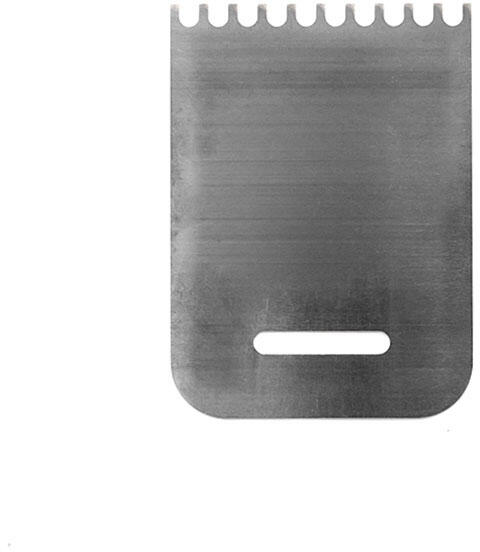 Fogazott acél spatulya 02 Művészi fogazott acél spatulya kiváló segítő eszköz festők és szobrászok számára. A rugalmas spatulyával különböző effekteket készíthetünk akrilfestémyenken, olajfestményeken vagy szobrokon. A spatulya uyanúgy agyag és modellező masszák formázására alkalmas. A spatulya segítségével hatékonyan dekorálhatunk sokfajta felületet. A spatuly