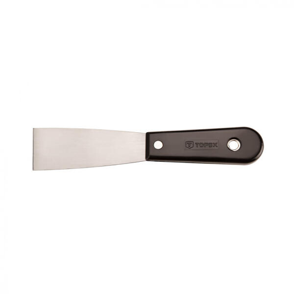 A TOPEX festőspakli alkalmazásra talál felújítási és befejező munkálatok során, pl. gipsz felvitelében, vagy felületekről szennyeződések eltávolításában. A penge polírozott. Markolata erős műanyagból készül. A TOPEX márka ezermestereknek készül. Festő spakli, polírozott penge, műanyag nyél