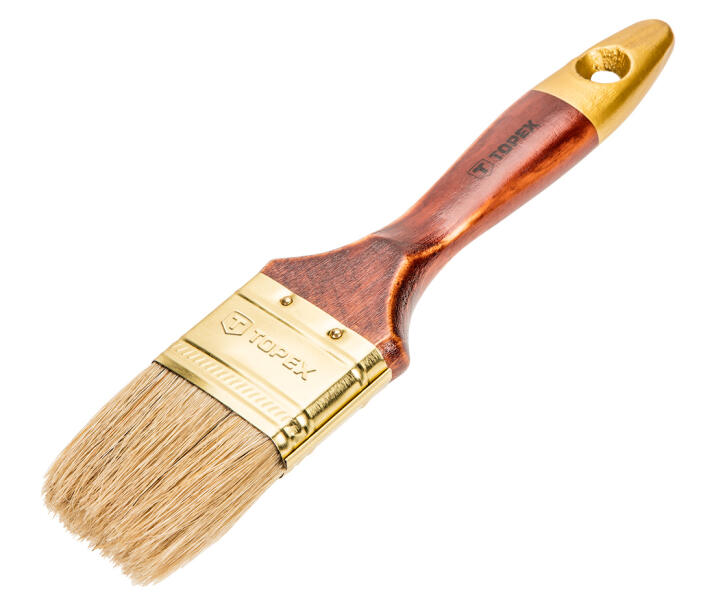 TOPEX festőecset olajfestékhez. A természetes sörte epoxi ragasztóba ágyazott, ami jobb minőséget biztosít az ecsetnek, és megakadályozza a sörte kihullását. A kézreálló, lakkozással védett fa markolat jól fekszik a tenyérben, növelve a munkavégzés kényelmét. A TOPEX márka ezermestereknek készül.