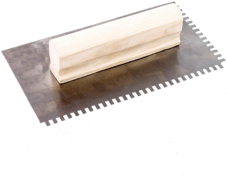 Fogazott simító 10 x 10 x 10 mm, 480 x 128 mm, lapvastagság 0,7 mm, rozsdamentes nemesacél, lakkozott fa markolat Fogazott simító 10 x 10 x 10 mm, 480 x 128 mm, Lapvastagság 0,7 mm, rozsdamentes nemesacél, Lakkozott fa markolat