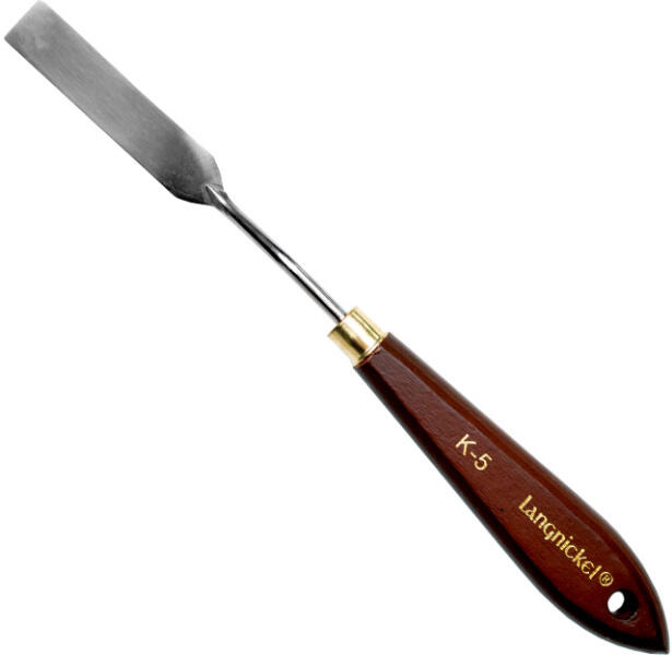 Festőspatula Royal & Langnickel LK-5 A Royal & Langnickel festő spatulái és palettakései egyedi és kiváló minőségű művészeti kellékek a festéshez. Nikkelezett rozsdamentes acél pengével, tömör tömör sárgaréz markolattal és keményfa nyéllel készülnek. Az acélpenge edzett, hogy a festés során a lehető legnagyobb egyenletes rugalmasságot és minőséget biztos