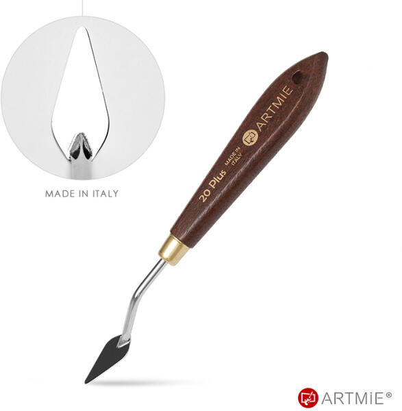 Spakli ARTMIE Plus 020 Olaszországban gyártot ARTMIE festőspaklik egy új kiváló minőségű festőkések különféle típusban. Az új formák széles választéka különféle felhasználásokat tesz lehetővé, a vékony rugalmas pengéktől a kicsi, jól meghatározott részletekig egészen a szélestől a lekerekített élekig és speciális lapát formájú, amely segítségével a fes
