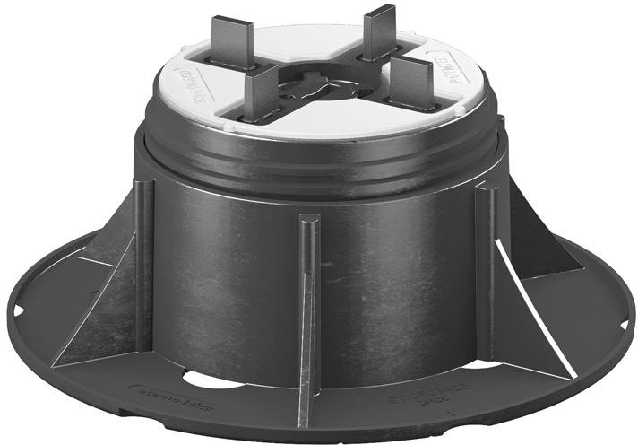Állítható magasságú szintező talp, csúszásmentes és kopogó hangot szigetelő gumi tömítőgallérral, adott terhelésnek megfelelő vastagságú járólapok, szárazon történő elhelyezésére. Előnyös terméktulajdonságok: Ál lítható magasság tartomány: 60-100 mm Fugaszélesség: 4 mm A termék időjárásálló, saválló és UV álló -40°C-tól +120°C-ig hőálló telje