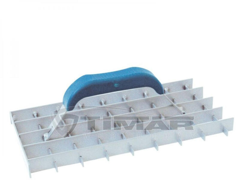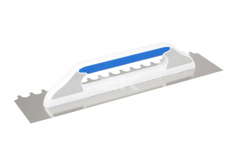 Saválló, rozsdamentes acél - lemezvastagság: 0,7 mm - ergonómikus és profilozott 3K gumirozott nyéllel (G-21) - önterülő ragasztó habarcsok, vastag rétegek és deformálható anyagok szétterítéséhez - nagyformátumú lapokhoz, biztosítja a lap teljes befedését - a kerekített sarkakkal megelőzhetőek a karcolások