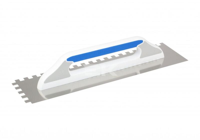 S aválló, rozsdamentes acél - lemezvastagság: 0,7 mm - ergonómikus és profilozott 3K gumirozott nyéllel (G-21) - ragasztó felhordásához valamint hőszigetelési munkákhoz - nagyformátumú lapokhoz
