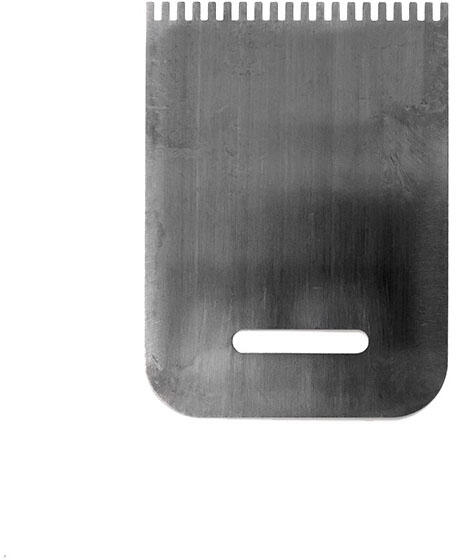 Fogazott acél spatulya 03 Művészi fogazott acél spatulya kiváló segítő eszköz festők és szobrászok számára. A rugalmas spatulyával különböző effekteket készíthetünk akrilfestémyenken, olajfestményeken vagy szobrokon. A spatulya uyanúgy agyag és modellező masszák formázására alkalmas. A spatulya segítségével hatékonyan dekorálhatunk sokfajta felületet. A spatuly