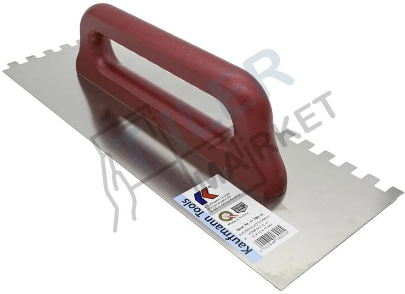 Kaufmann simító 10x10 mm-es fogakkal. Méretek: 38 x 13 cm; Ref: 17.300. 10