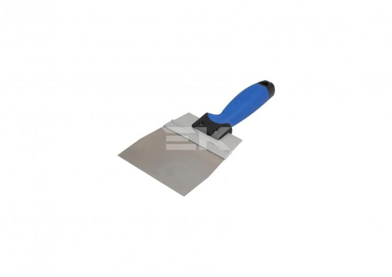 Építőipari befejező munkákhoz - rozsdamentes, saválló acél, vastagsága: 0,5mm - ergonómikus, profilozott kétkomponensű (G-15) puha fogantyú - alumínium profilba ágyazott munkafelület