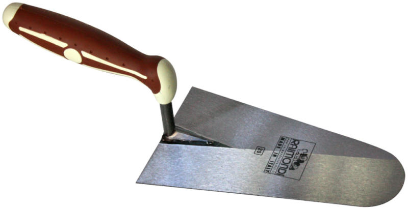Professzionális Raimondi kőműves kanál, szögletes kialakítással, rozsdamentes bevonattal, kényelmes fogású, csúszásmentes nyéllel, hogy a hosszú órákon át tartó munka a lehető legkevesebb terhet rakja a felhasználó kezére. Hosszúság: 160mm