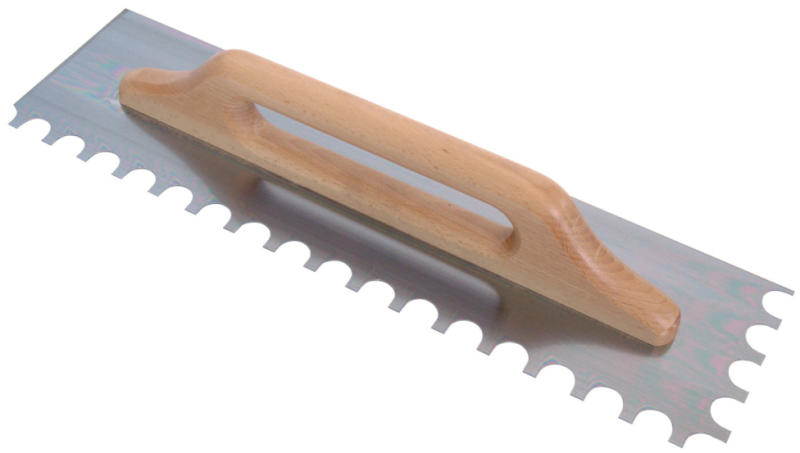 Kiváló minőségű, Raimondi fogazott glettvas, íves kialakítással, folyékonyágyas ragasztók felhordásához, rozsdamentes bevonattal, lakkozott famarkolattal, melynek köszönhetően kevésbé csúszik ki a kézből, munkavégzés alatt. Terméktulajdonságok: Méretek: 48x12 cm Fogak mérete: 15 mm, íves kialakítás Súly: 600 gramm